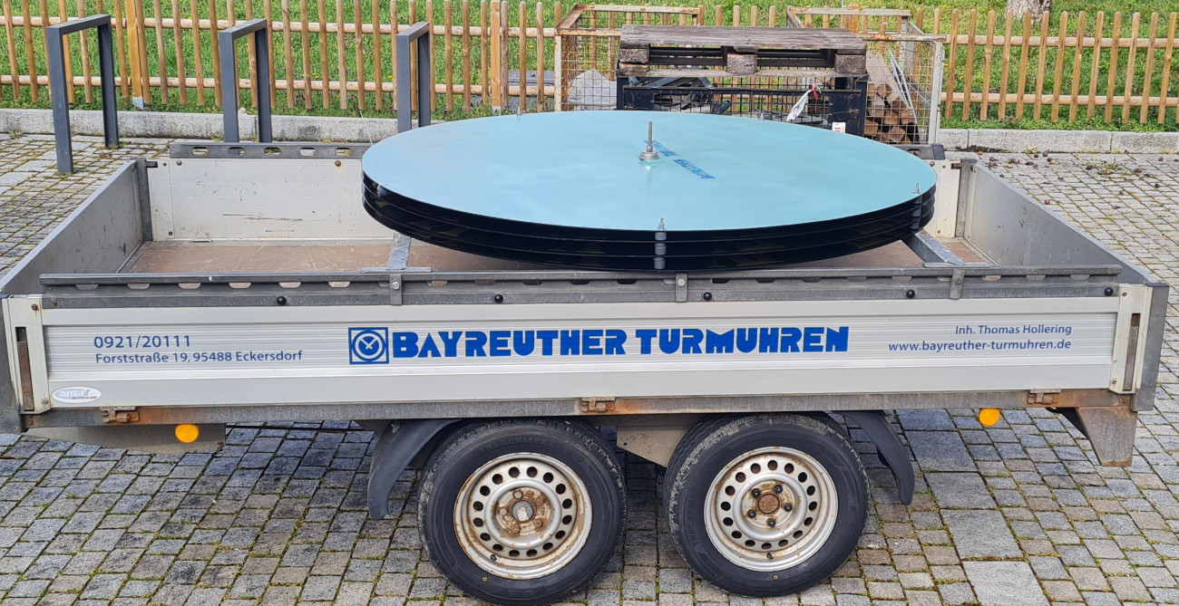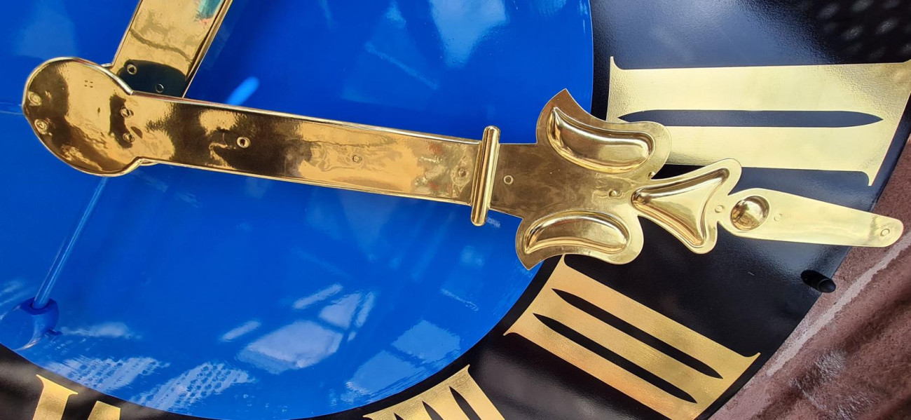 Die Bayreuther Turmuhrenfabrik hat die neuen Zifferblätter und Zeiger am Kirchturm montiert. Jetzt erstrahlt der Turm an allen vier Seiten in den Farben Gold, Blau und Schwarz. Sobald das Gerüst abgebaut ist, sind sie wieder für alle gut sichtbar.
